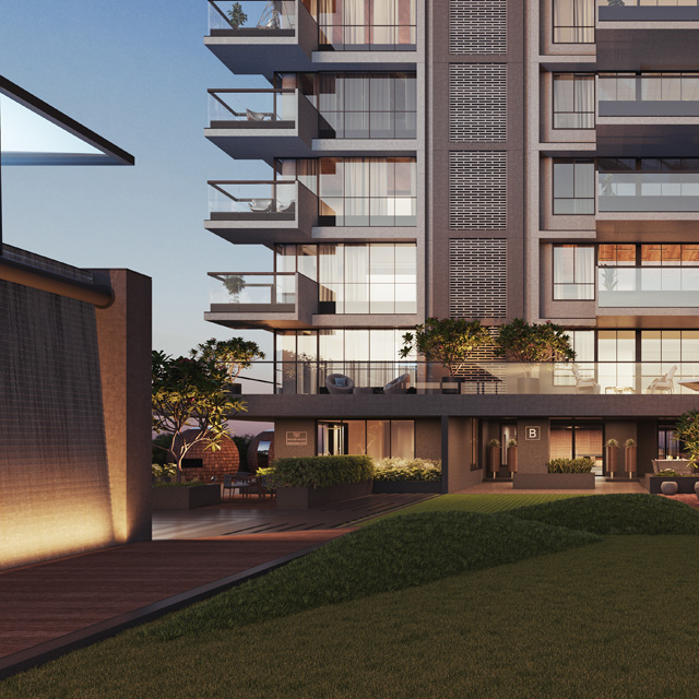 The infinite space design of the 5 BHK duplex residences is exquisite & the space has been utilized with complete creativity and precision. With an entire new concept of 2 master bedrooms with a designated mud room, utility and grain store with 3 cantilever balconies in each residence for panoramic views this space confluence sets the right mood for a new identity.